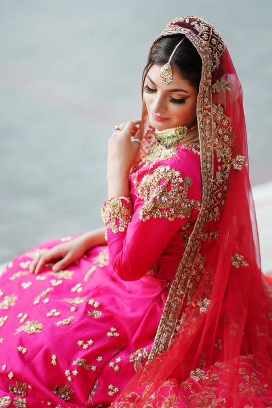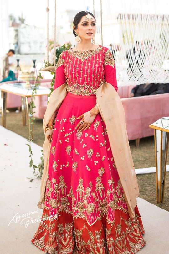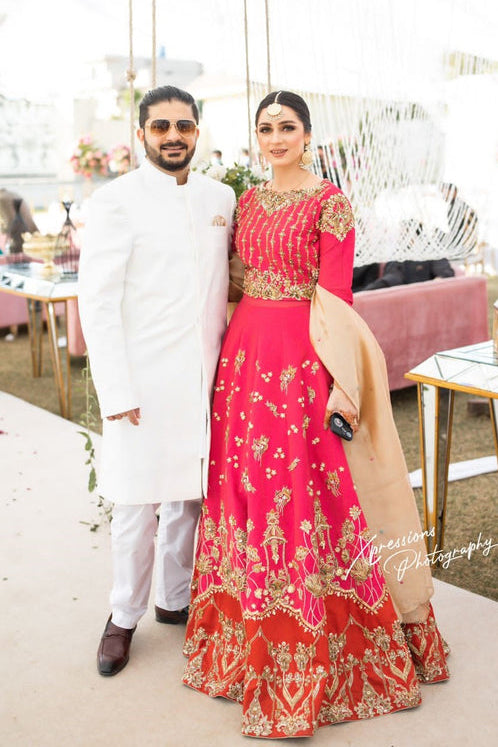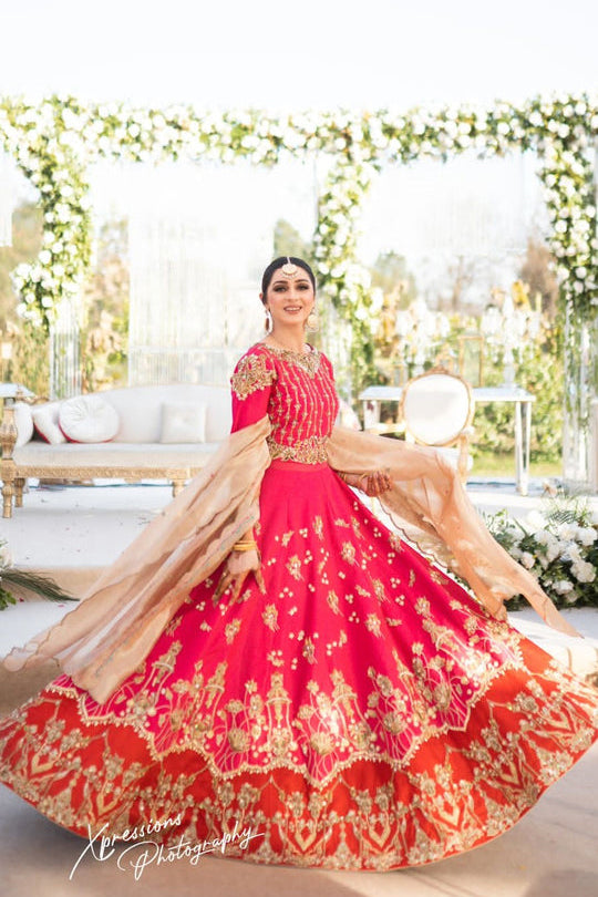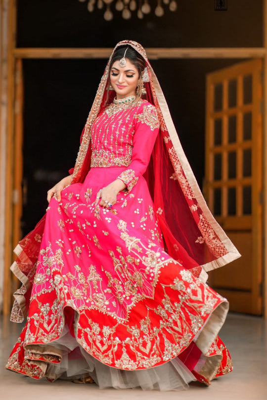 The most ethereal barat bridal in two primary shades, An ode to nostalgic and romantic, embellished with zardozi work and paired with fine net dupatta that drapes effortlessly.