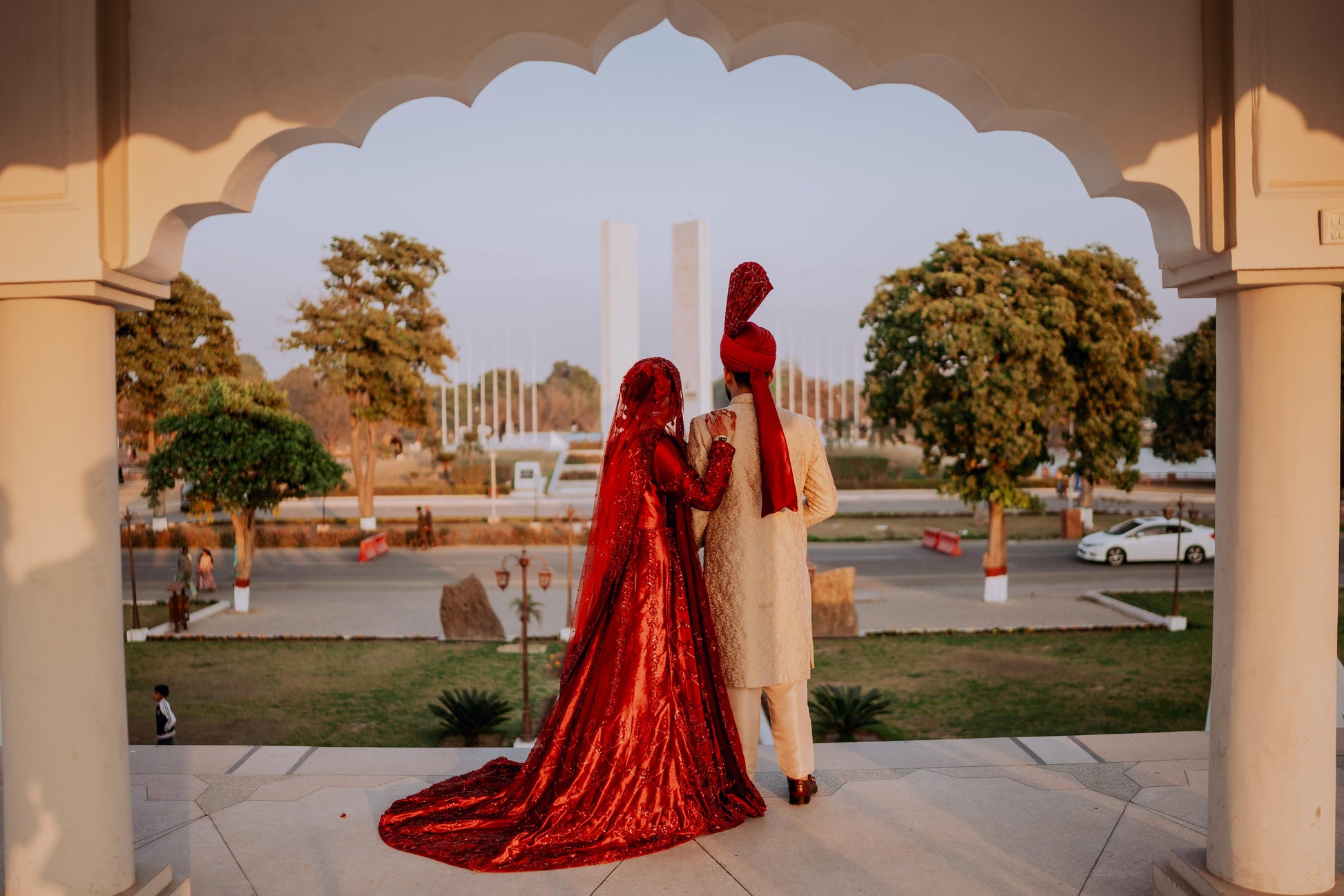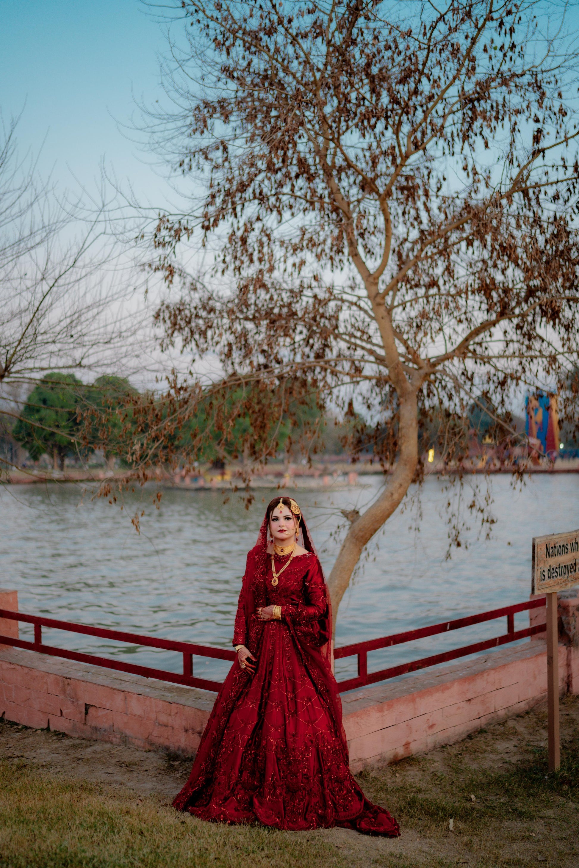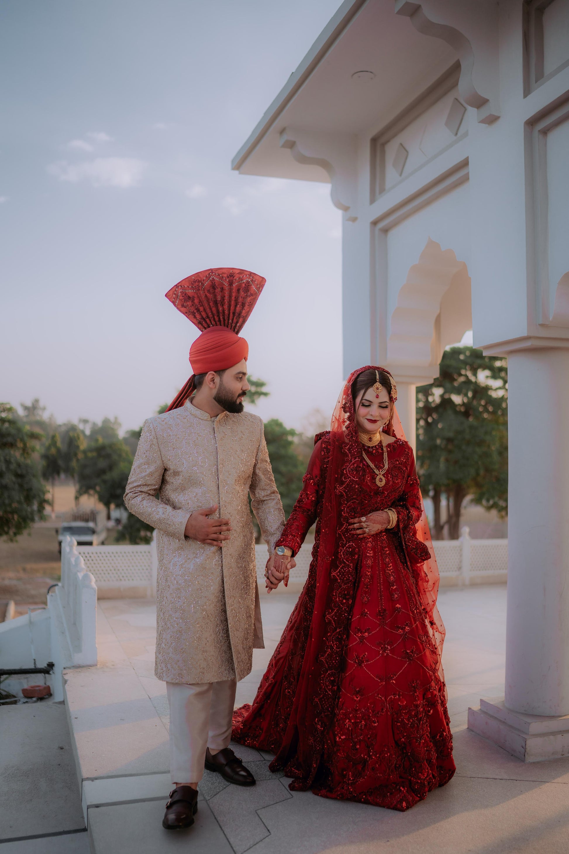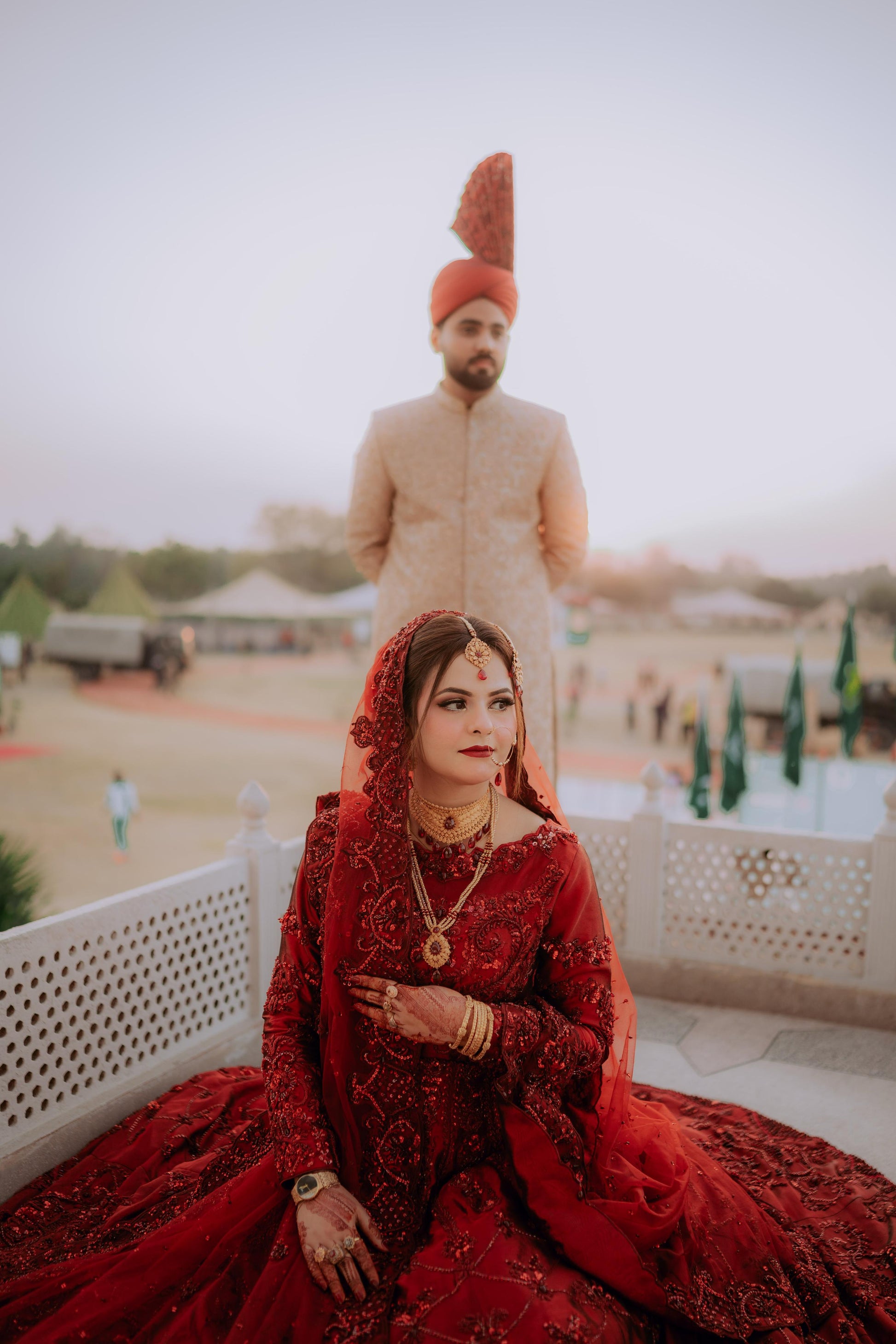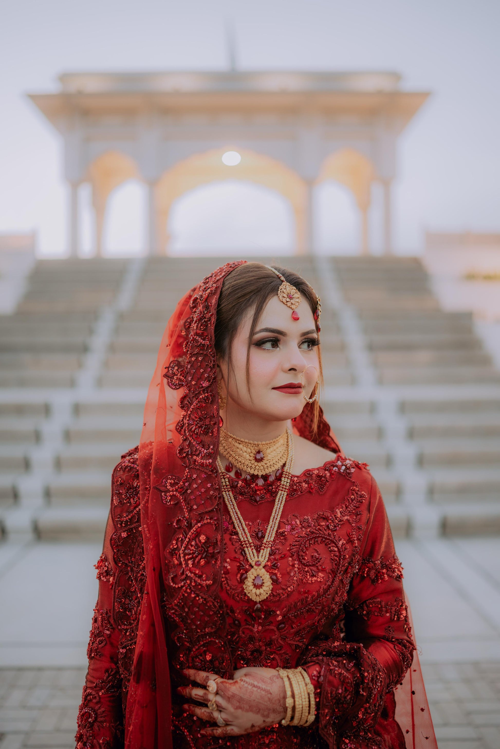 Regal and majestic red on red, meticulously curated for brides seeking a traditional signature lehenga choli. This ensemble boasts intricate nakshi dabka, tilla, and resham work. It is accompanied by a four-side heavy cut work embellished border that exudes exceptional bridal charm and radiance.