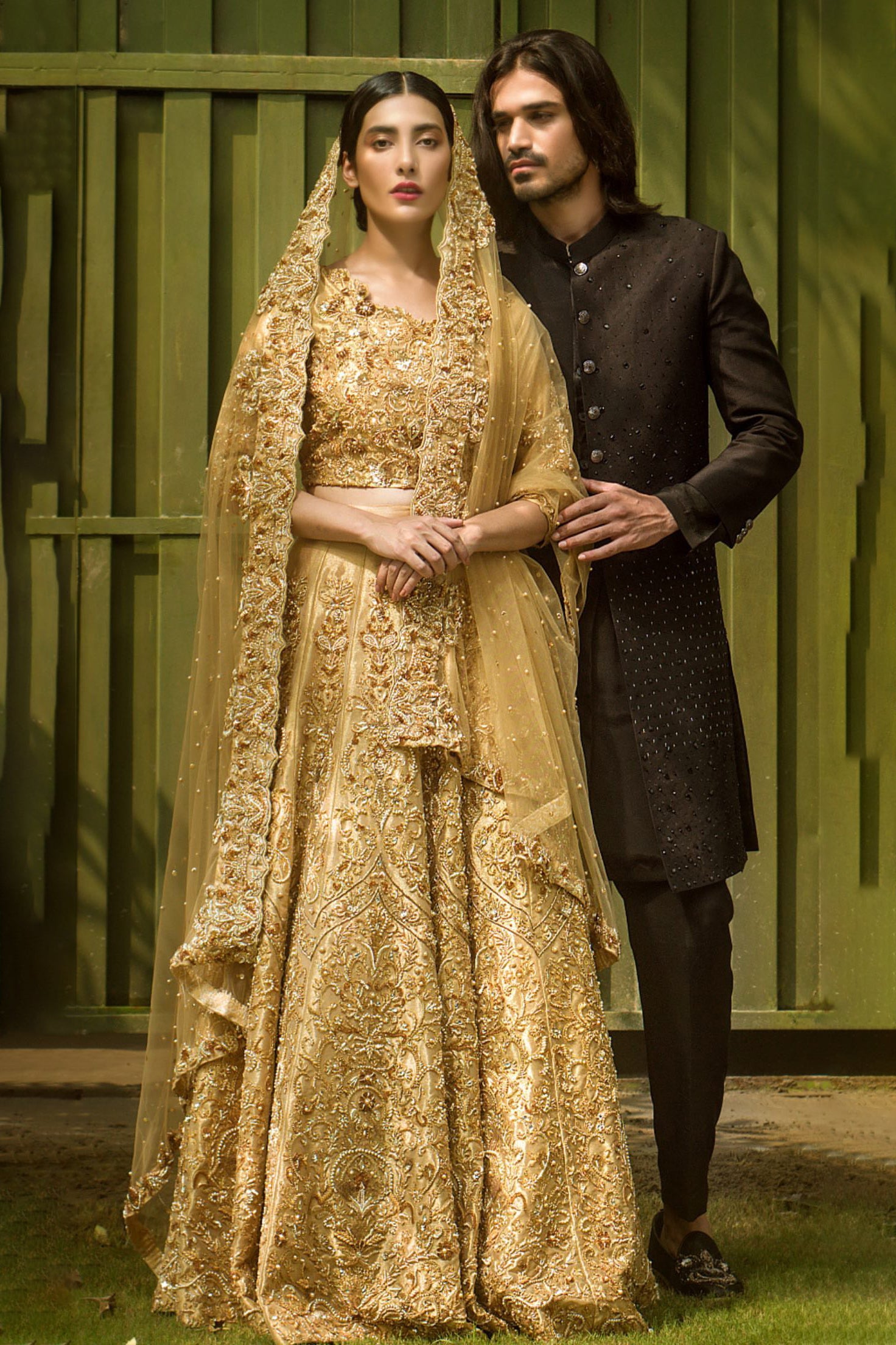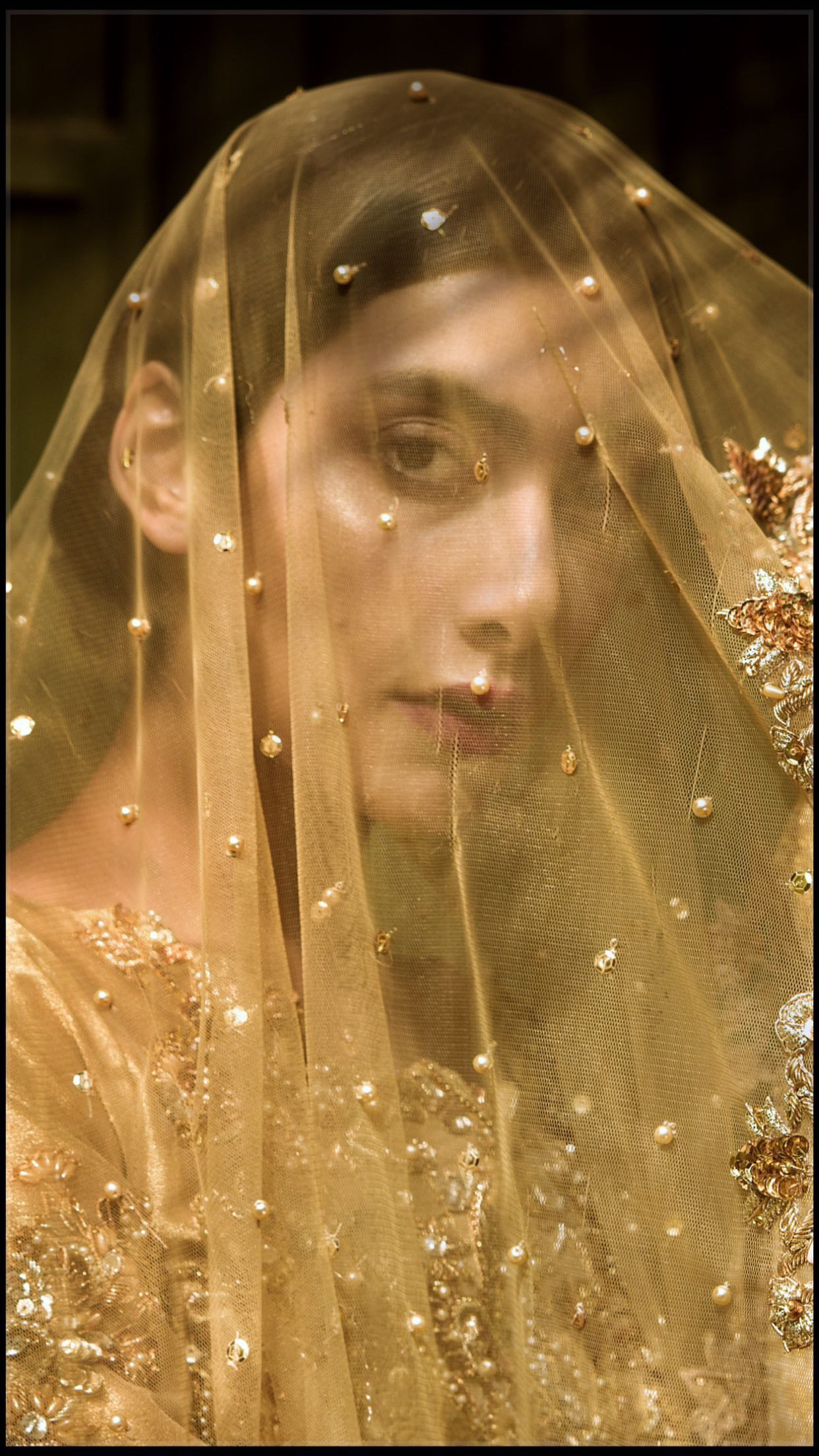 A intricately detail adorned signature bridal with magical craftsmanship and the feminine silhouette. This tissue ensemble reflects on the theme of royalty with the finest craftsmanship and exquisite shades.