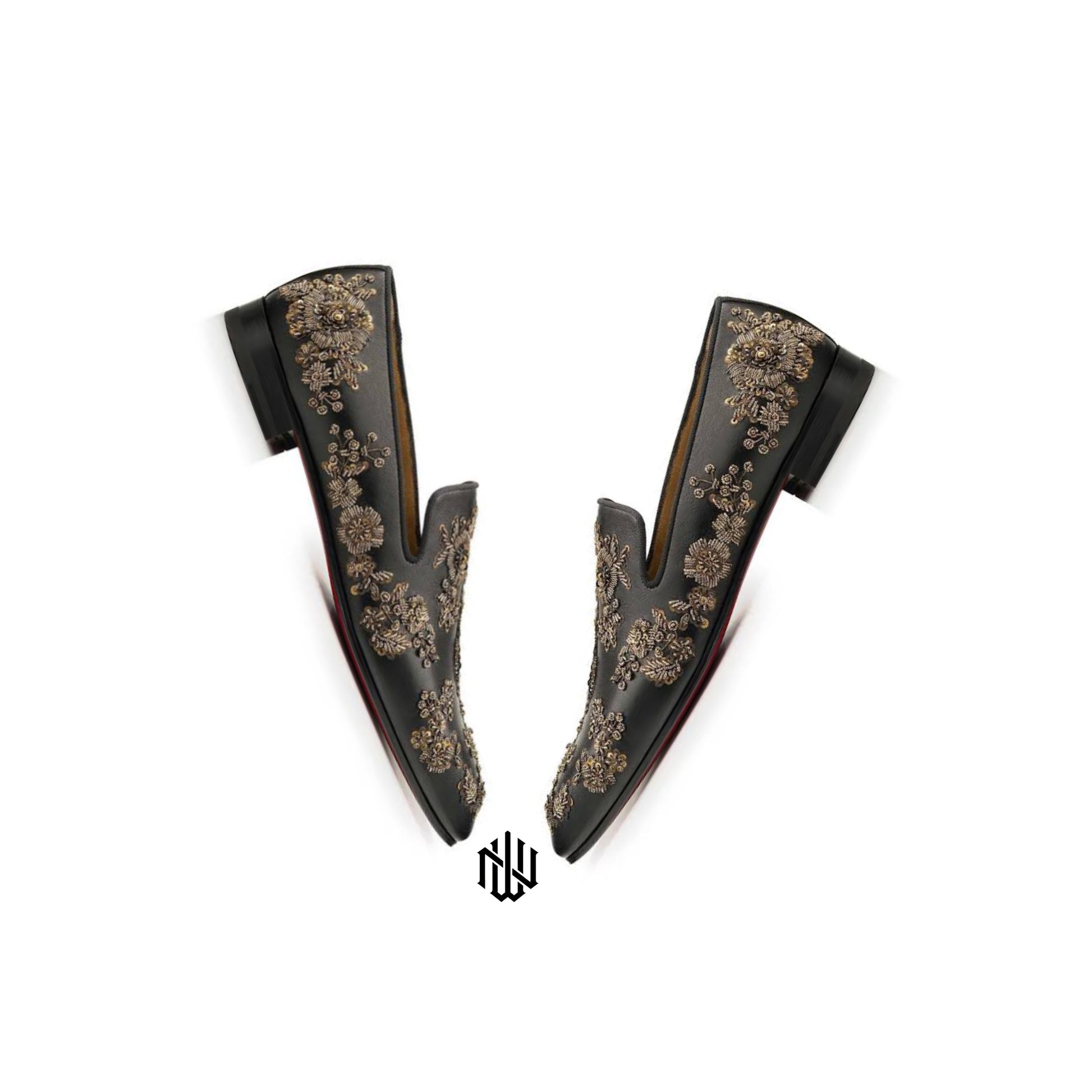 Discover the ultimate luxury experience with our custom-fit, handmade leather shoes, showcasing ornate embroidery and sleek European silhouettes, inspired by the maharajas' baroque sensibilities.